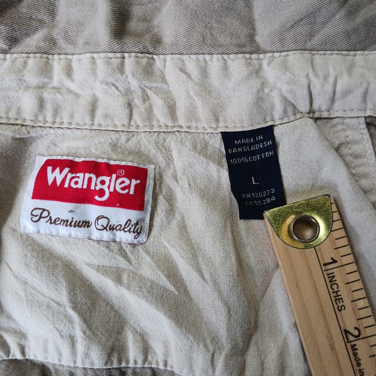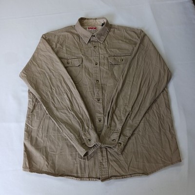 The Wrangler Premium Quality Denim Shirt in Men's size L features a classic button-up style with a collared neckline and long sleeves. Made from durable cotton denim fabric, this shirt is versatile for various occasions such as travel, casual outings, work, or business meetings. The solid blue color and regular fit make it a timeless wardrobe staple suitable for all seasons. With a spread collar and convenient pockets, this shirt offers both style and functionality for the modern man.