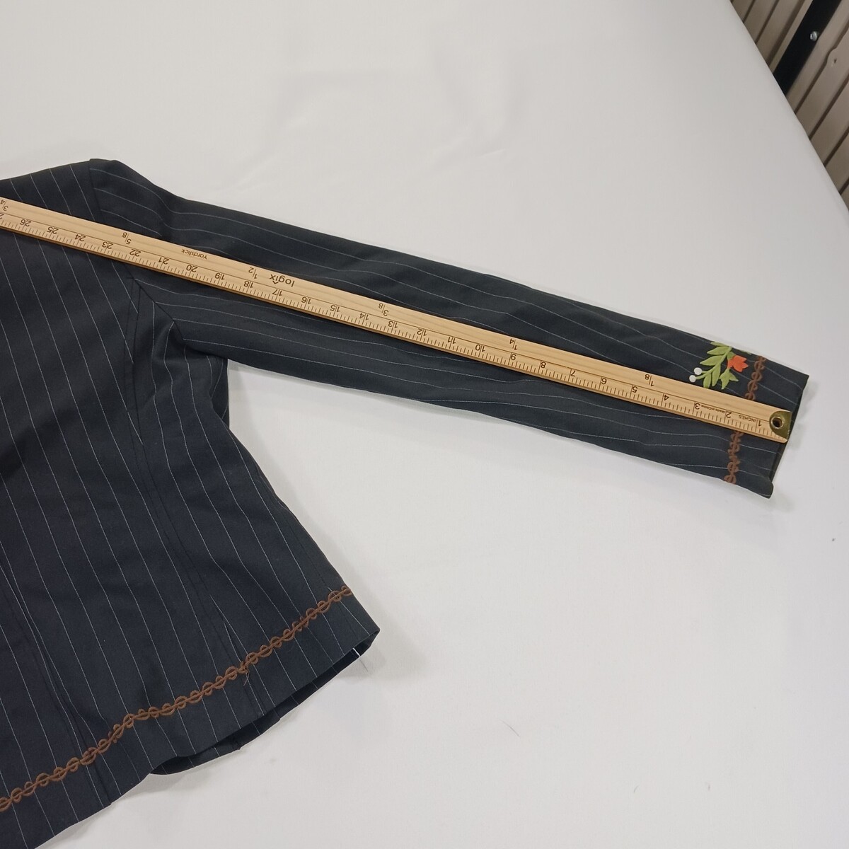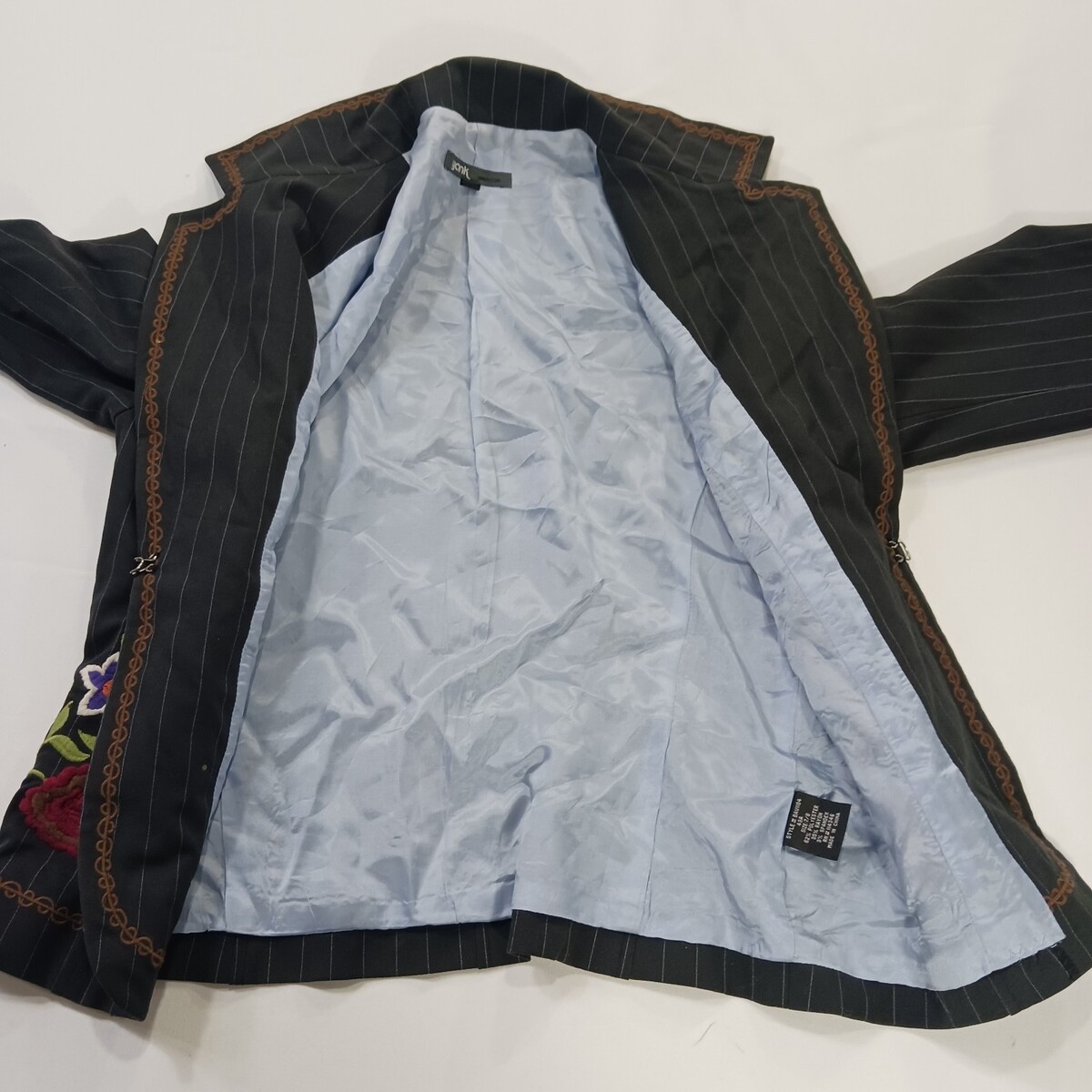 The Yank American BAU1184 Youth Gray Orange -Pinstripe Embroidered Blazer in size 7/8 is a stylish and versatile jacket perfect for various occasions including business, casual, formal, and parties. Made from a durable polyester blend with a polyester rayon spandex fabric type, this blazer features a hook and eye closure, notch lapel style, and a slim fit. The embroidered striped floral pattern adds a touch of elegance, making it a great addition to any teen's wardrobe. With a chest size of 34 inches and lined with 100% polyester, this blazer is both fashionable and practical for all seasons.