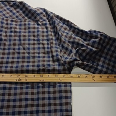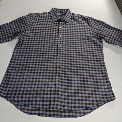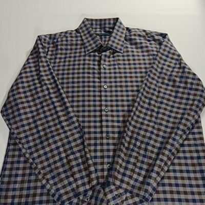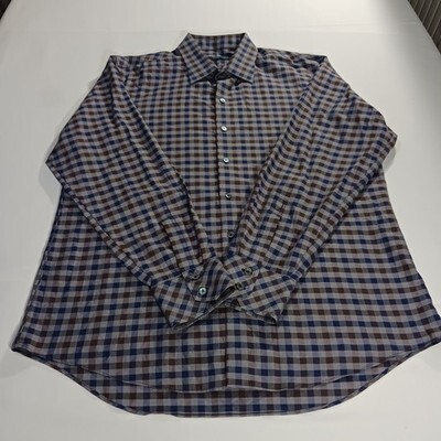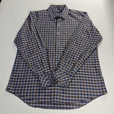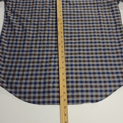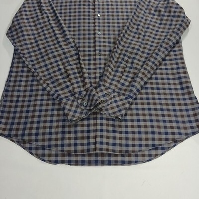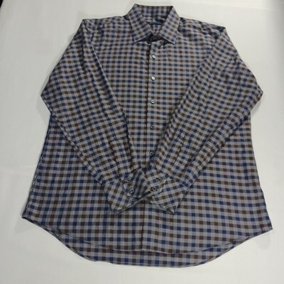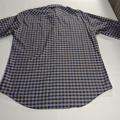 The Zachary Prell Long Sleeve Shirt in men's size XL features a stylish gray-blue brown plaid pattern, perfect for casual, workwear, or business occasions. Made from 100% cotton with a lightweight fabric type, this shirt is suitable for all seasons and includes a button-up closure and collared neckline. With its California and city-themed design, this shirt from the Zachary Prell product line offers a regular fit and is machine washable for easy care. Ideal for adding a touch of sophistication to any outfit, this shirt is a versatile and stylish addition to any man's wardrobe.