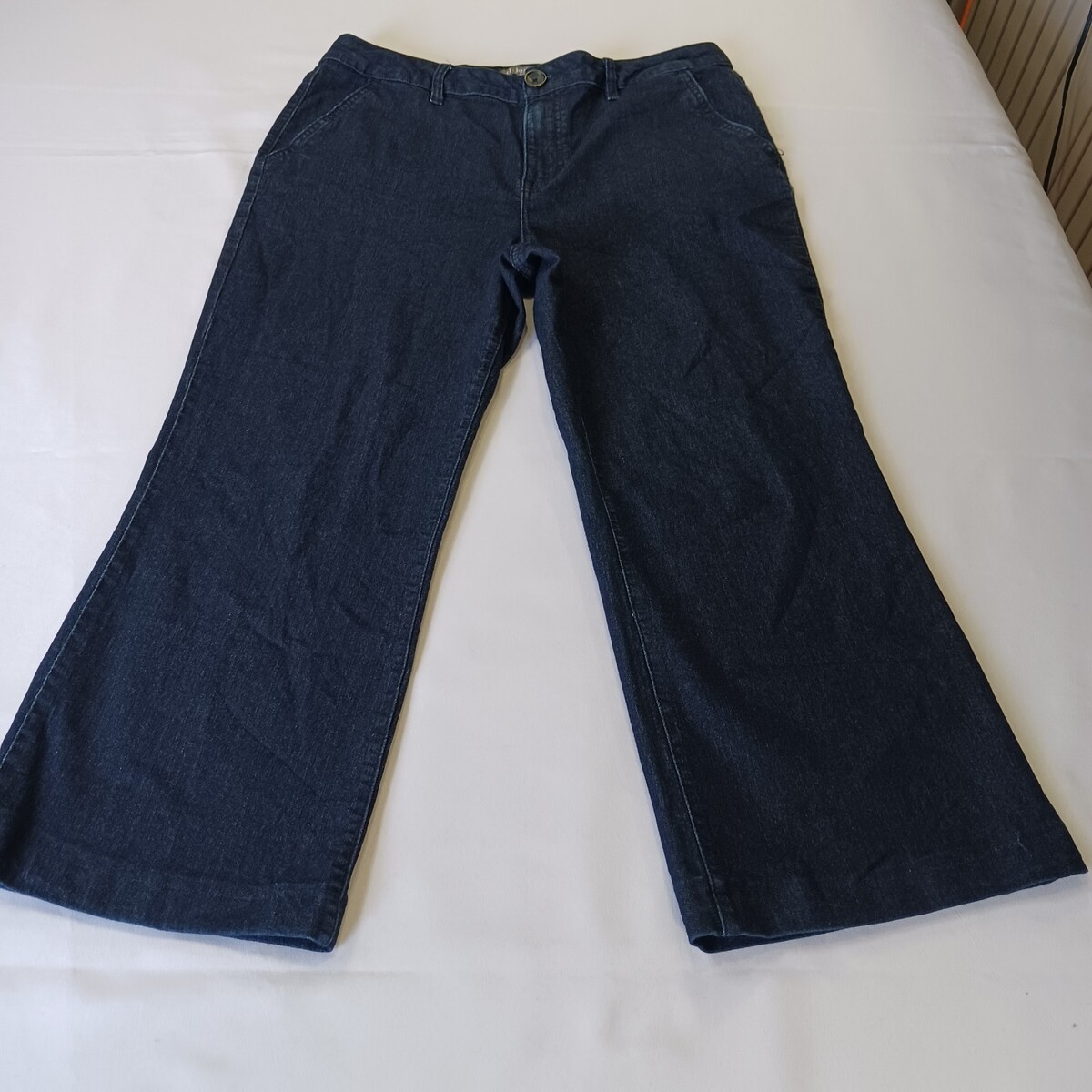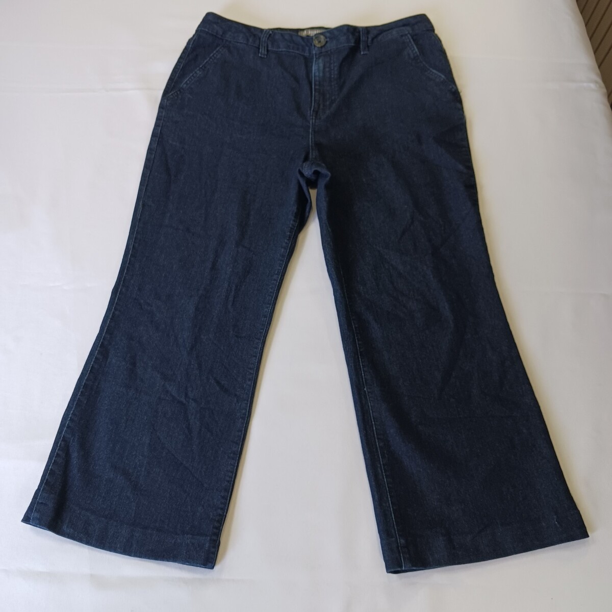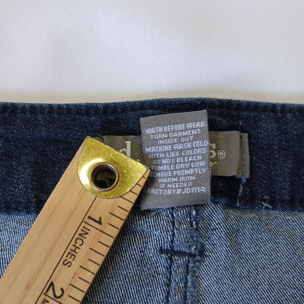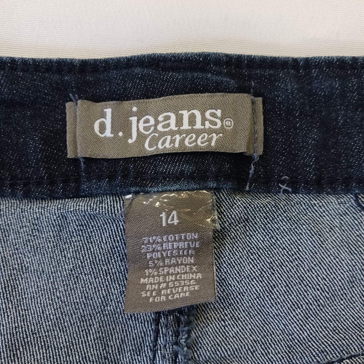 These D. Jeans Career RN#55356 Women's Blue Cotton Blend Bootcut Jeans in size 14 feature a solid pattern with a high rise waist and a 24-inch inseam. Made from a comfortable cotton blend denim fabric, they have a button closure and a 5-pocket design for added convenience. The bootcut style offers a flattering silhouette, making them a versatile option for any season. Perfect for everyday wear or more formal occasions, these jeans are a stylish and practical addition to any woman's wardrobe.